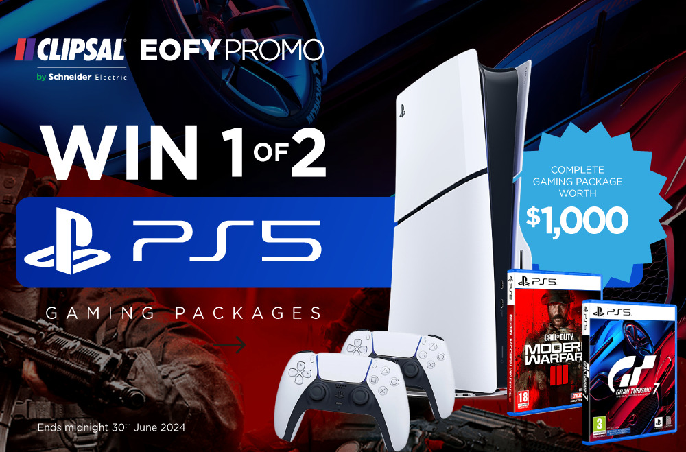 Purchase Clipsal Products this EOFY to WIN 1 of 2 PS5 Gaming Packages worth $1000! Click for more...