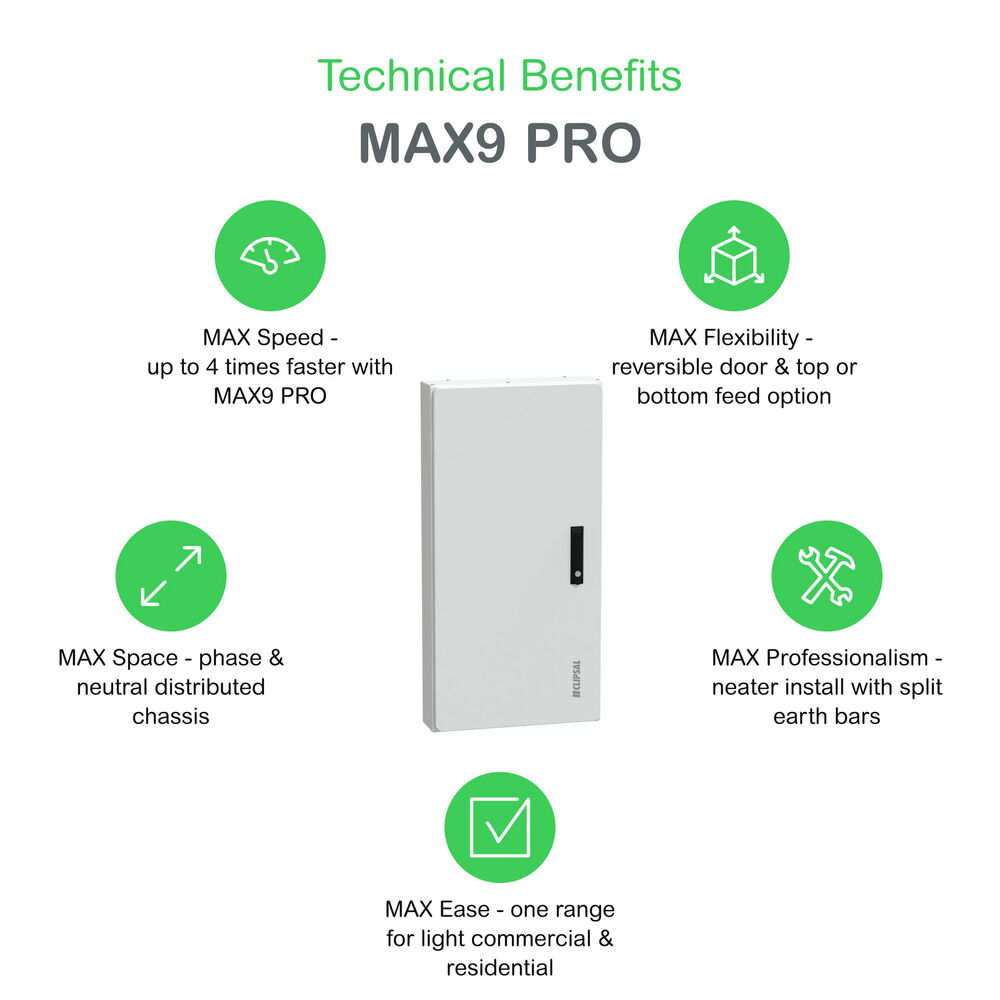 A. Yes, the MAX9 Pro board accepts MCBs, RCBOs, and arc fault detection devices for outgoer circuits.