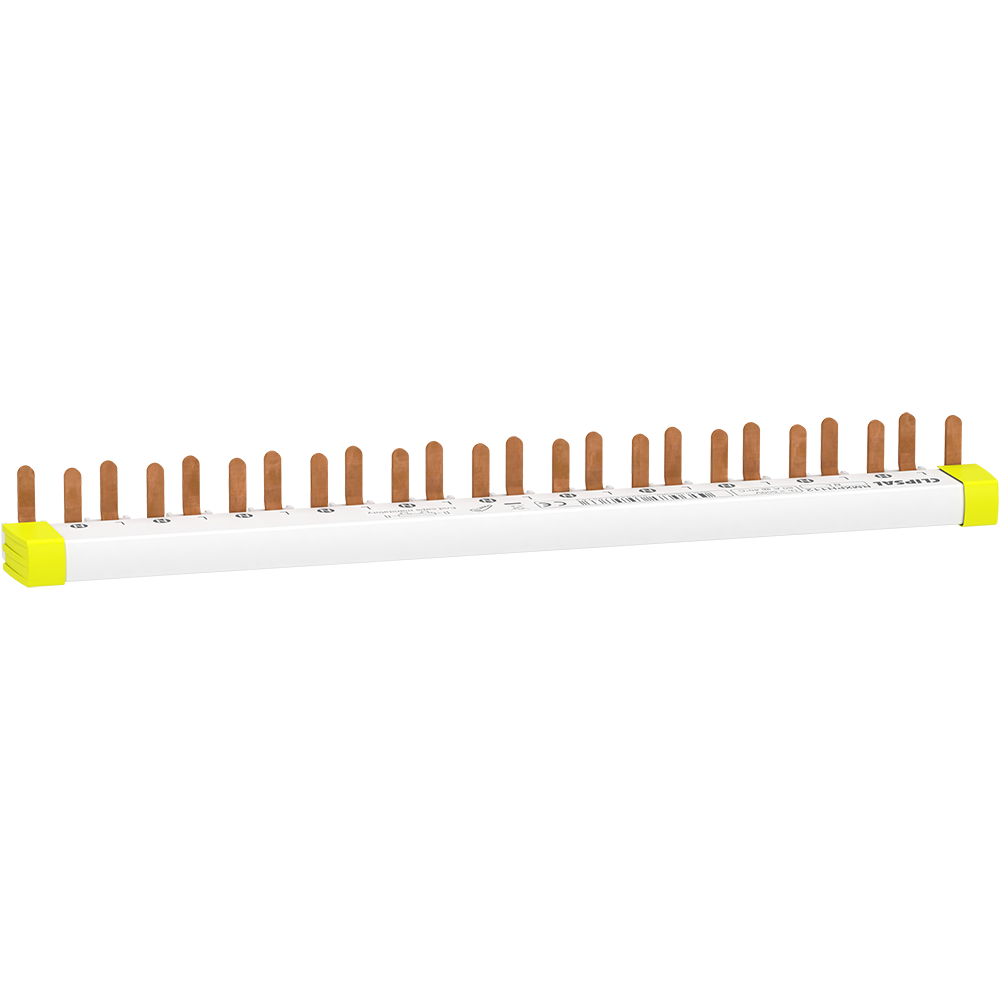 The Clipsal Resi MAX 1P+N 12 Module SLIM Comb Busbar is a pin type copper busbar with plastic insulation. It is designed for 1P+N connections with the Clipsal Resi MAX range.
