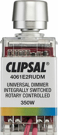 This dimmer is one of the latest dimmer from Clipsal. It is an integrally switched rotary controller dimmer which eliminates the need for a switch to turn on and off the dimmer. This means that now you can have a more streamlined look for your clipsal satun switchgear, elminating the need for switch, and up to 6 dimmers on a Six Gang Plate. Simply push the dimmer on (pushbutton operation) and then use the rotary knob to adjust the light.