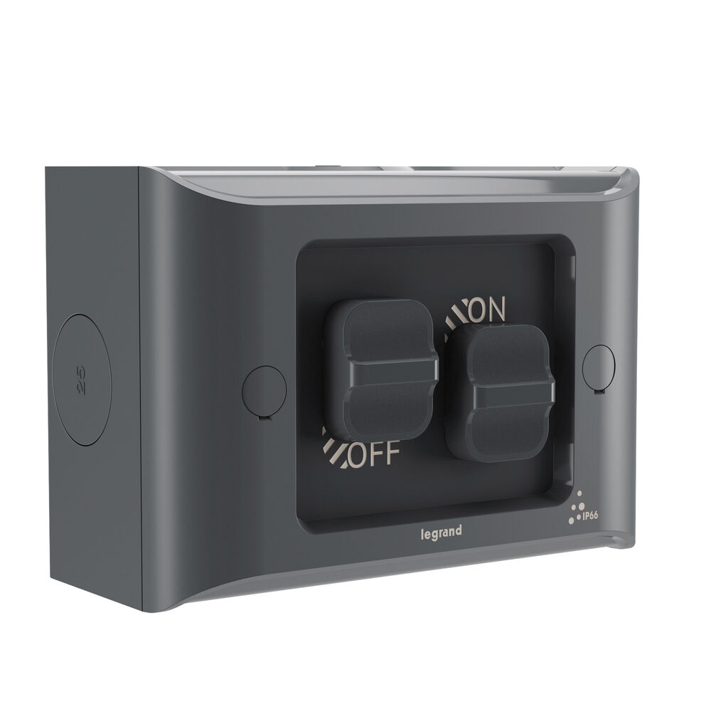 The Legrand Aqua Life WL770/2CG 2 Gang Weatherproof Switch is a tough, outdoor-ready switching solution built for Australia’s demanding conditions. Featuring an IP66 weatherproof rating, robust 16A current capacity per gang, and UV-stabilised construction, this dual switch unit is ideal for controlling multiple outdoor circuits—such as lighting, pumps, or outdoor appliances—from a single, secure point.