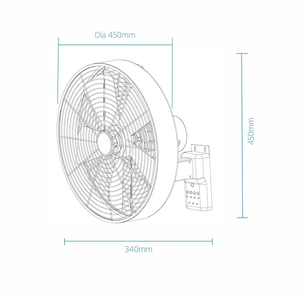 The Martec Como MWFC400M is a stylish and powerful 16" (400mm) wall-mounted fan designed for efficient air circulation in homes, offices, and commercial spaces. Powered by a robust 55W AC motor, it delivers impressive airflow up to 4,000 m³/hr, while its included remote control, oscillation functions, and adjustable timer make it a practical and user-friendly cooling solution.