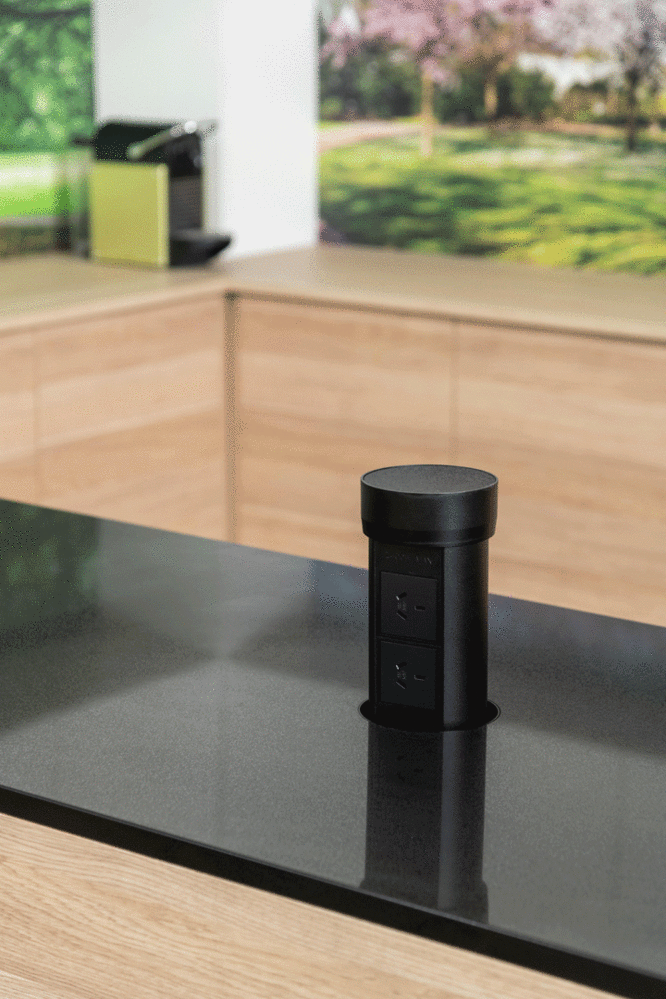 Point Pod Compact provides access to power points and USB sockets, without compromising the design of your bench tops. The hidden pop-up power outlet is neatly concealed within a stone or timber bench top. Using an electric lift, simply press the top of the unit and it emerges from the bench top, ready for use.